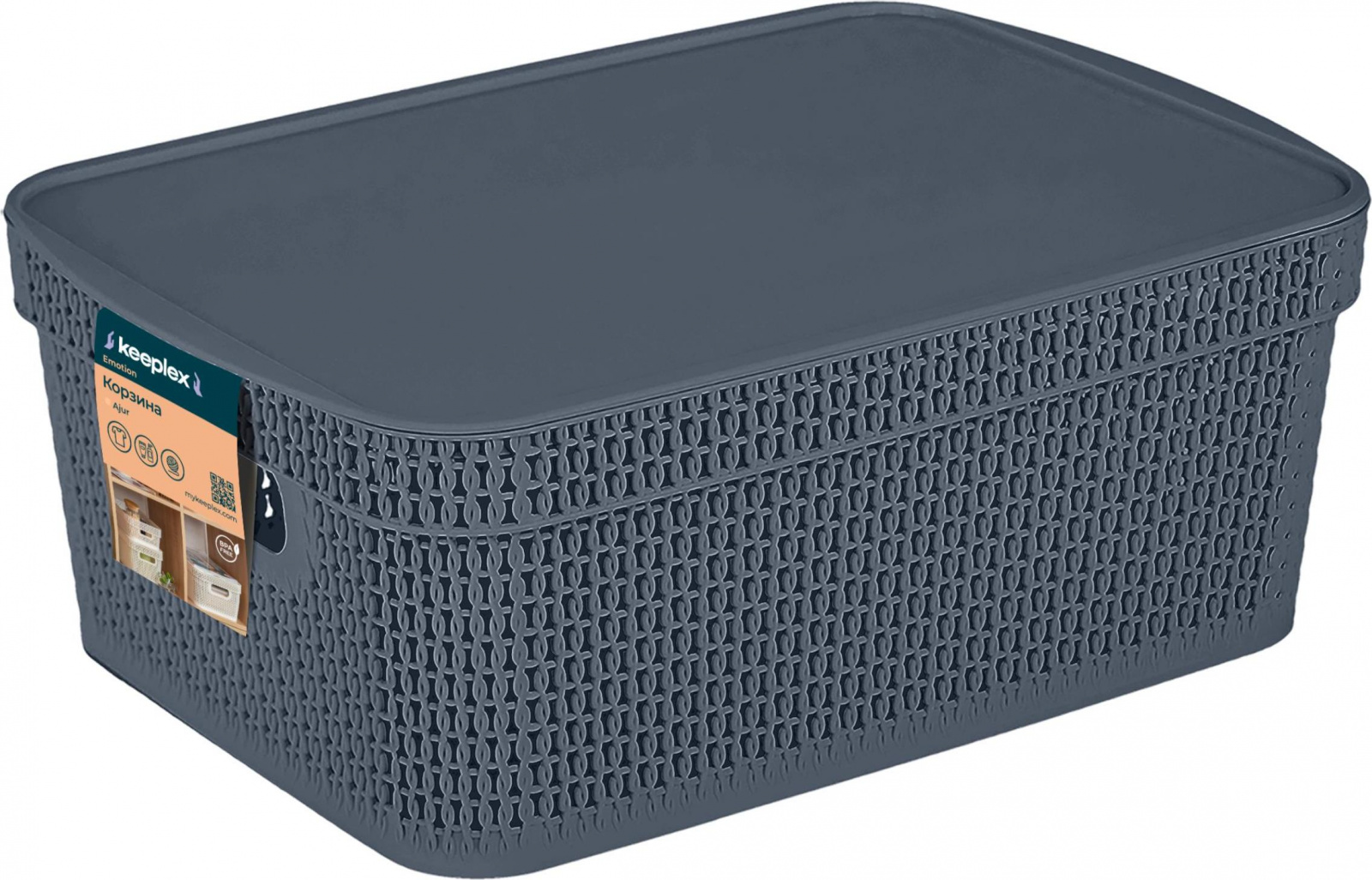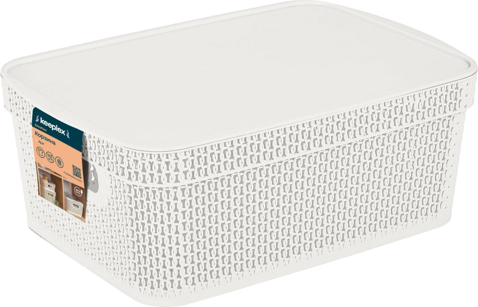Корзина Keeplex Вязь 11л с крышкой — изящное решение для хранения в ванной, на кухне или в гостиной. Изготовлена из пищевого пластика, устойчива к влаге и легко моется. Подходит для фруктов, сладостей, белья, косметики. Скругленные края ручки не будут врезаться в ладонь. Прочный и легкий корпус с фактурой, имитирующей вязаное плетение, обеспечивает проветривание содержимого. Плоская крышка позволяет удобно установить корзины одну на другую, организовав полноценную систему хранения. Входит в коллекцию Вязь — сочетается с другими предметами интерьера в едином стиле. Габариты: 380х270х143 мм.