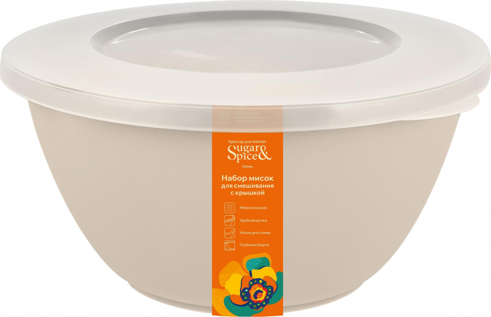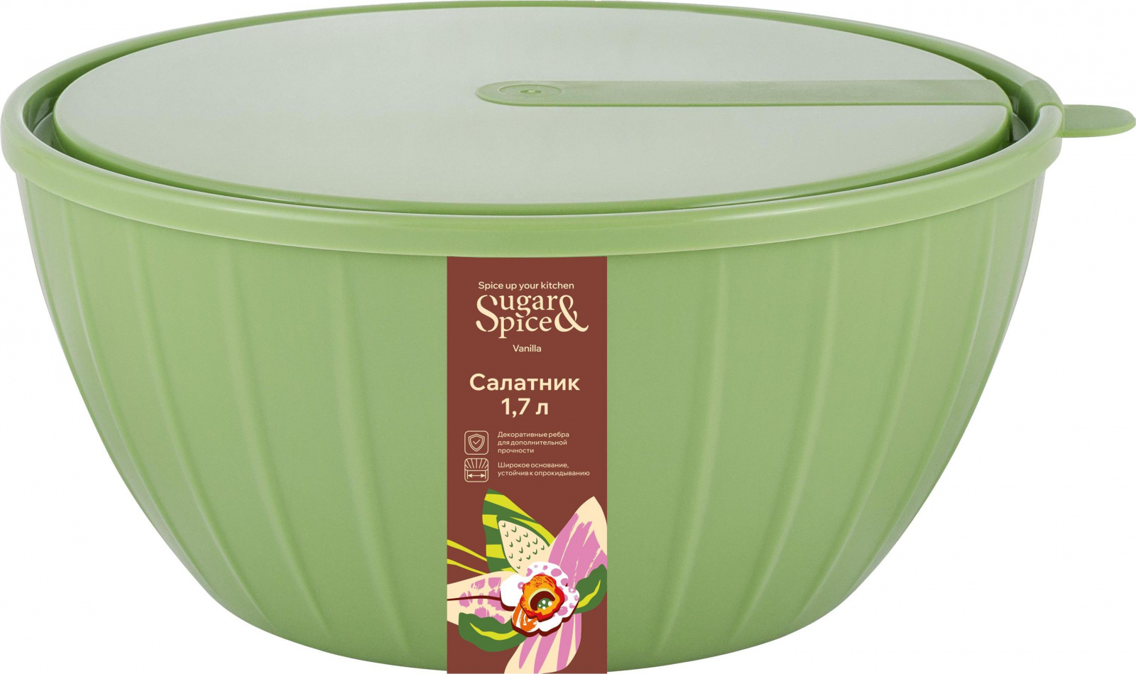 Салатник Sugar&Spice коллекция Vanilla, с крышкой, пластиковый, 1,7л, 195х182х96 (SE1866)