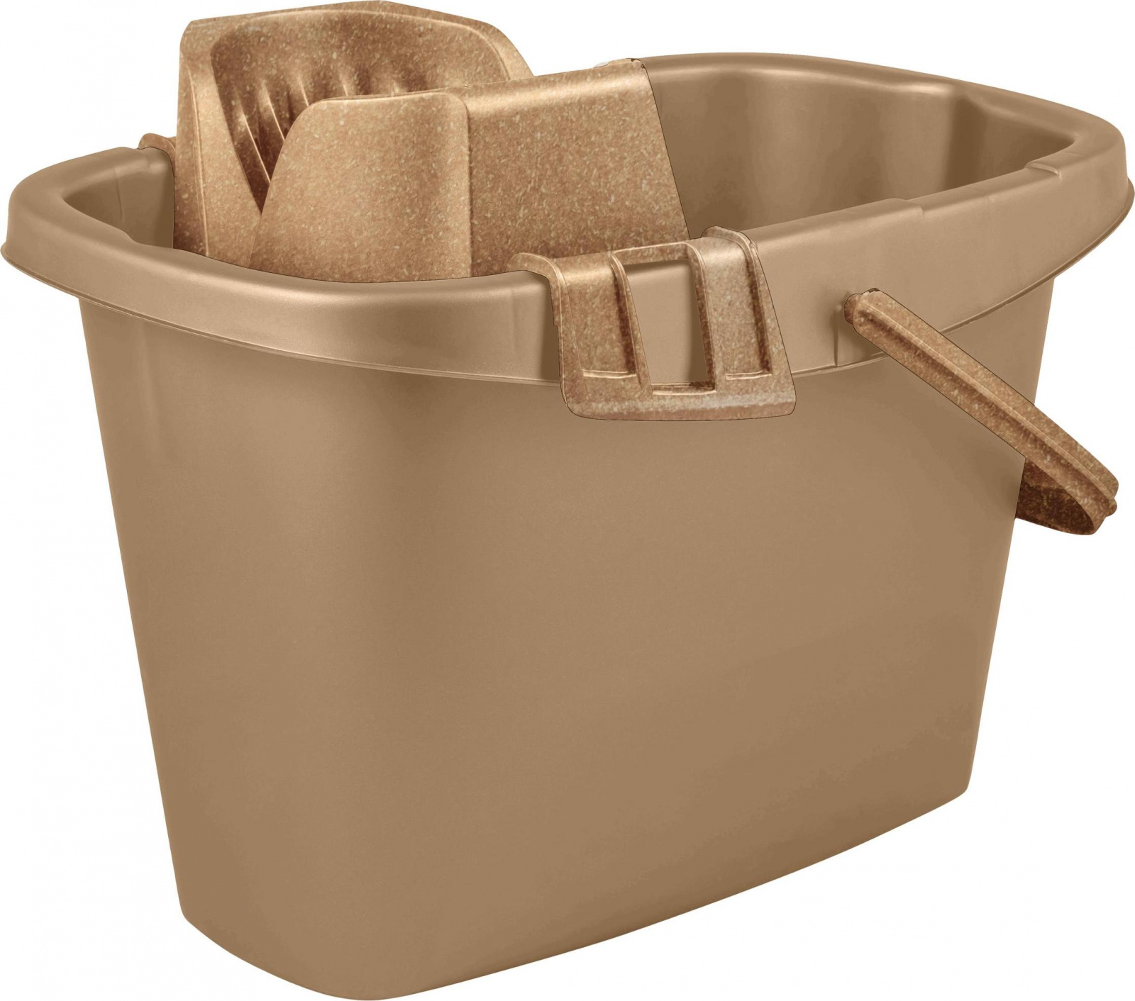 Ведро Spin&Clean прямоугольное с отжимом из коллекции Wood, объемом 13 л из прочного долговечного пластика. Съемный отжим компактно размещается на корпусе, открывая основную часть ведра для полоскания швабры, а при необходимости его можно убрать. Отжим тщательно отжимает швабры ленточного и веревочного типов.