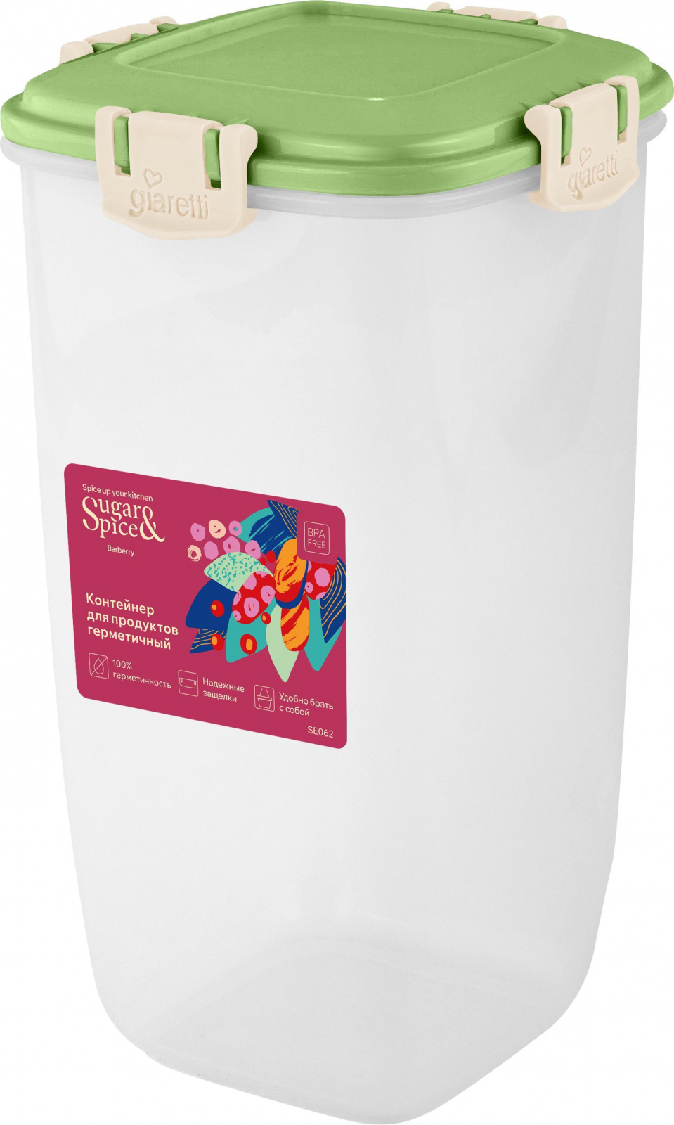 Контейнер для продуктов Sugar&Spice коллекция Вarberry, с защелками, герметичный, 1,5л, высокий, 120х120х205 (SE2241)